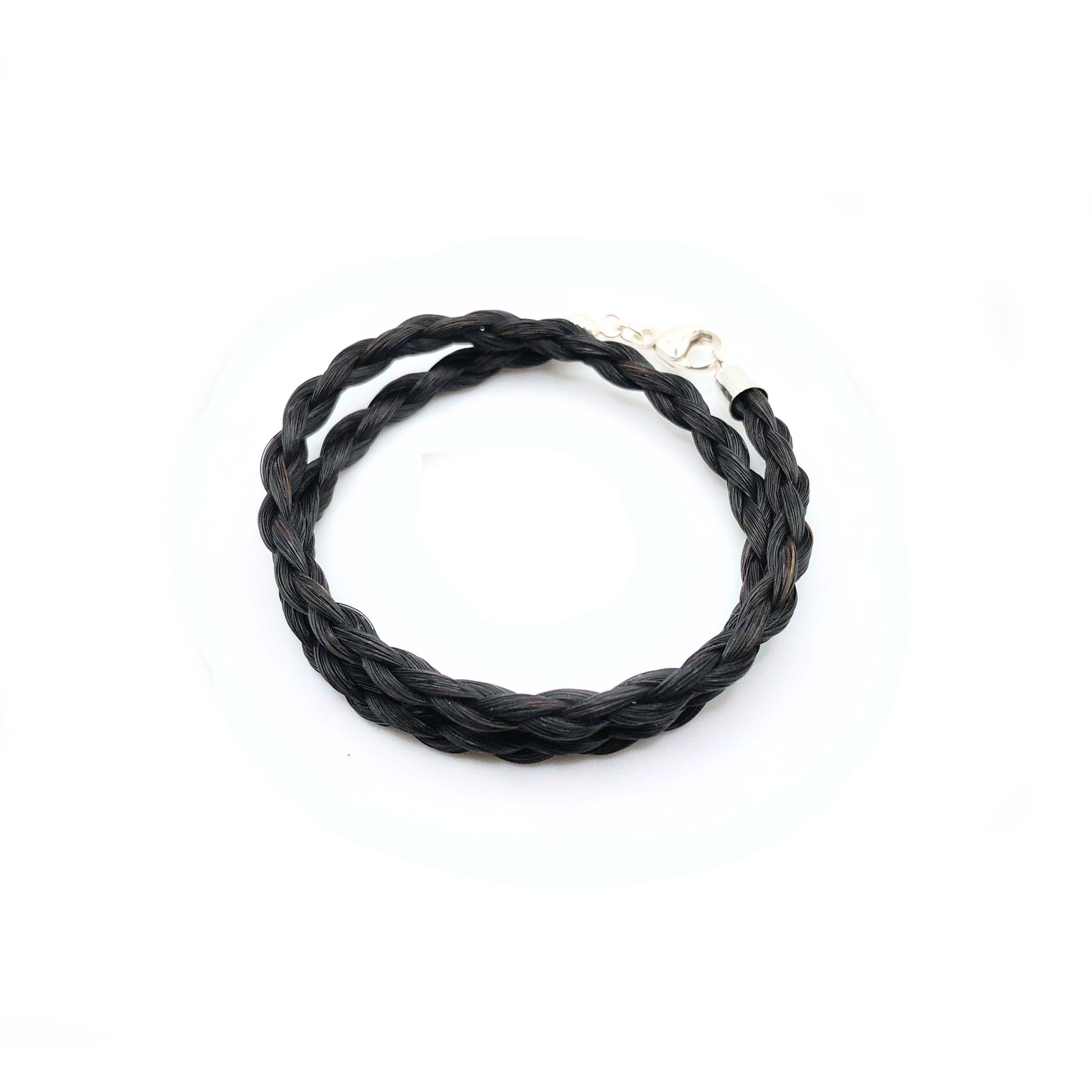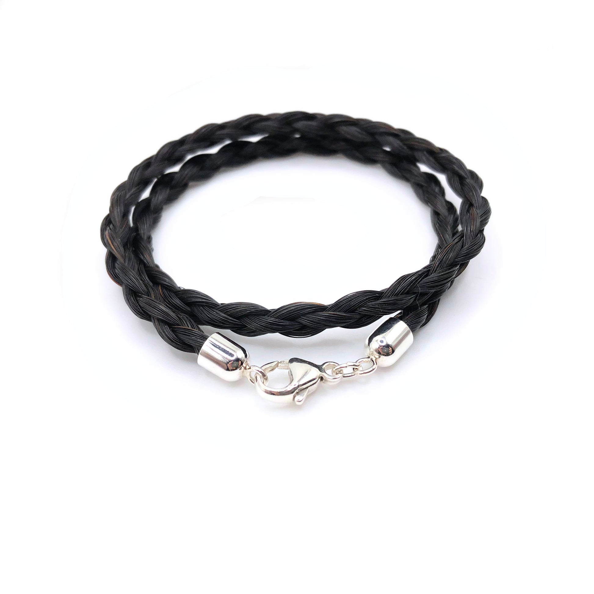 Für dein Armband verwenden wir ausschließlich natürliche Schweifhaare. Diese werden sorgfältig gereinigt, per Hand geflochten und zu einem hochwertigen Armband verarbeitet, das sich zweimal elegant um dein Handgelenk legt und mit einem Karabinerverschluss aus 925 Silber geschlossen wird.